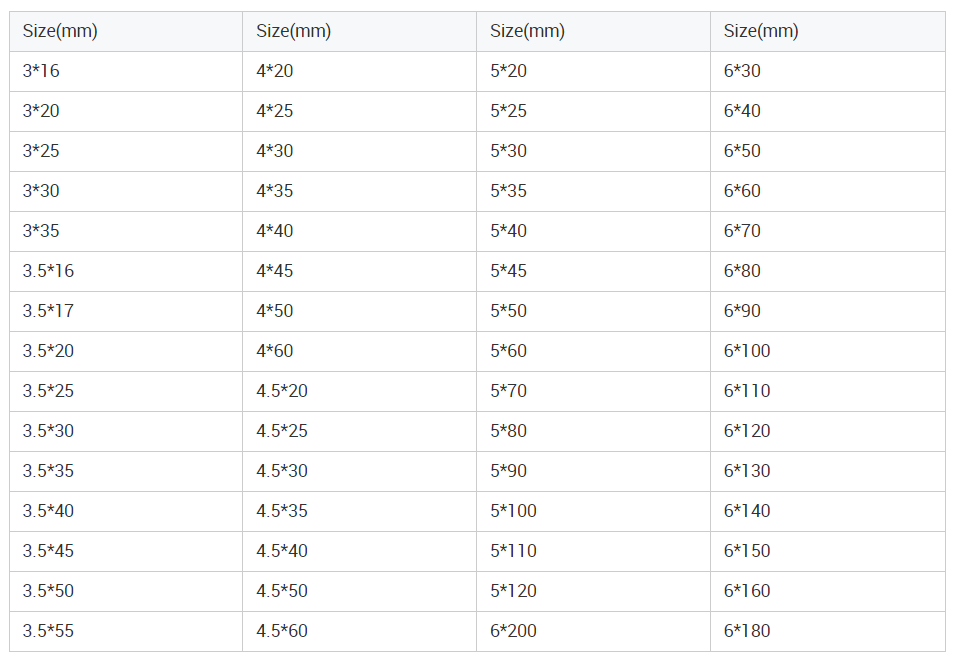 Length: 16mm-180mm