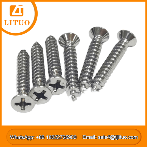 Stainless steel countersunk self-tapping screws are made of stainless steel and offer excellent rust and corrosion resistance. They feature a conical countersunk head and self-tapping capability. They require no pre-tapping and can be screwed directly into softer materials such as sheet metal, plastic, and wood to form a matching thread. After installation, the head is recessed below the surface, creating a smooth finish.